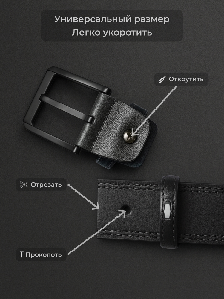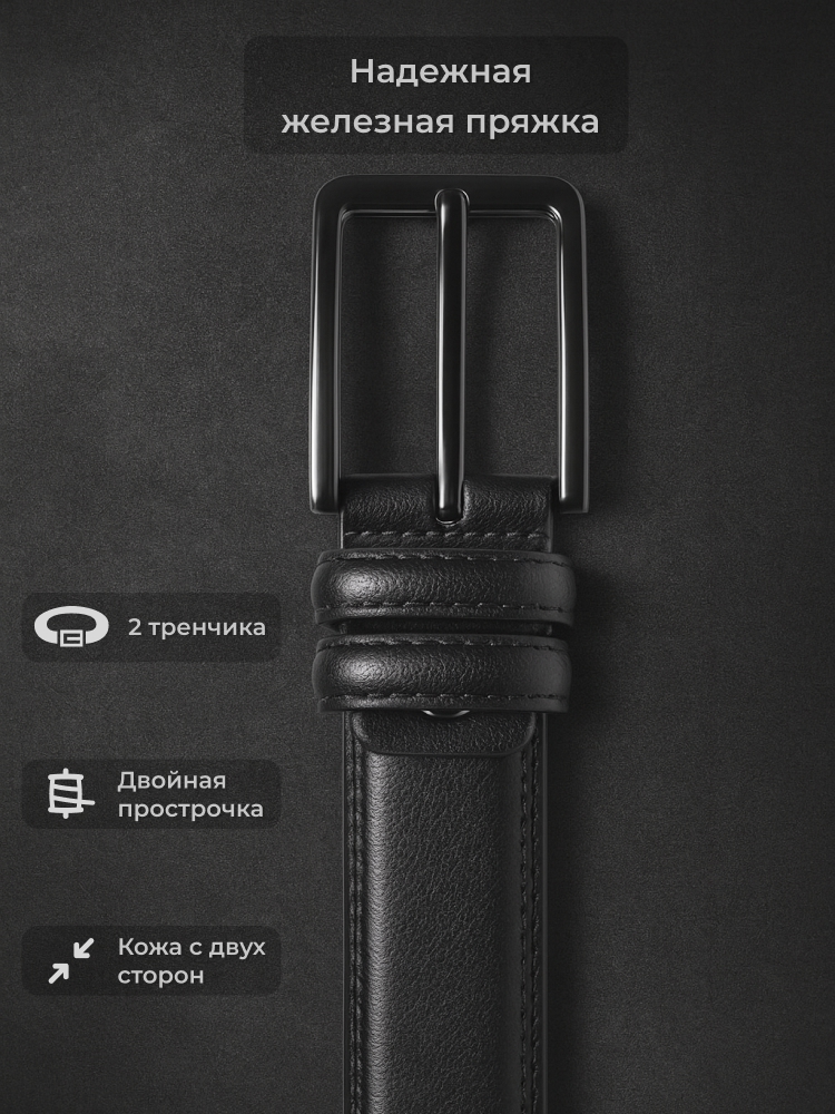 Стильный черный ремень от TRUDIO shop — это универсальный аксессуар для каждого мужчины, ценящего комфорт и безупречный внешний вид. Изготовлен из качественного материала — 100% натуральная кожа.